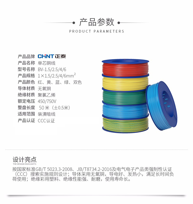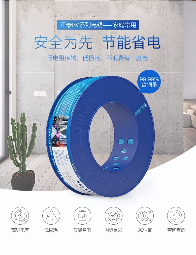 正泰(CHNT)電線(xiàn)電纜銅芯家用電線(xiàn)國(guó)標(biāo)電源線(xiàn)BV2.5/4/6平方單芯銅線(xiàn)電線(xiàn)100米(其它型號(hào)咨詢(xún)客服) 自營(yíng)