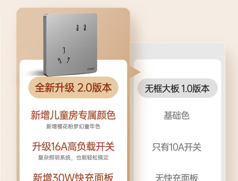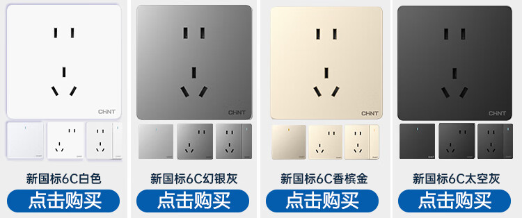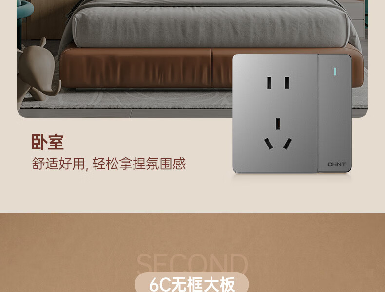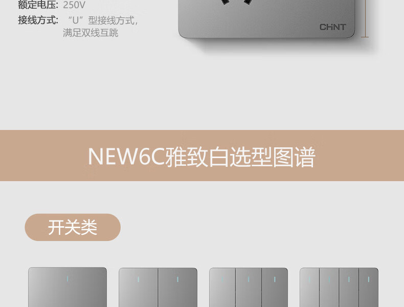 正泰(CHNT)開(kāi)關(guān)插座墻壁面板家用86型面板斜五孔插座NEW6C10只裝幻銀灰(其它型號(hào)咨詢(xún)客服) 自營(yíng)