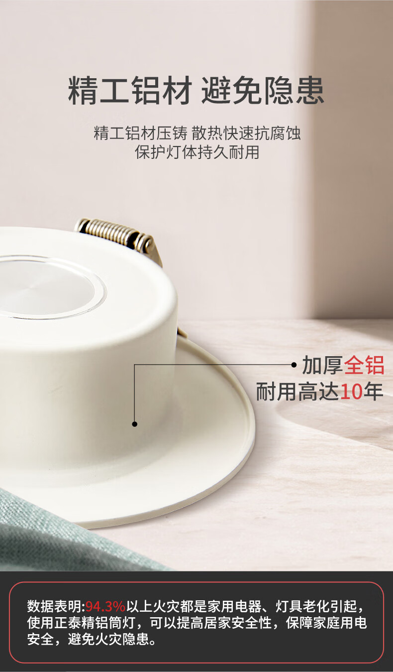 正泰(CHNT)LED筒燈客廳嵌入式天花燈鋁材銀邊白10只裝4W三色光開孔7.5-8.5cm 自營