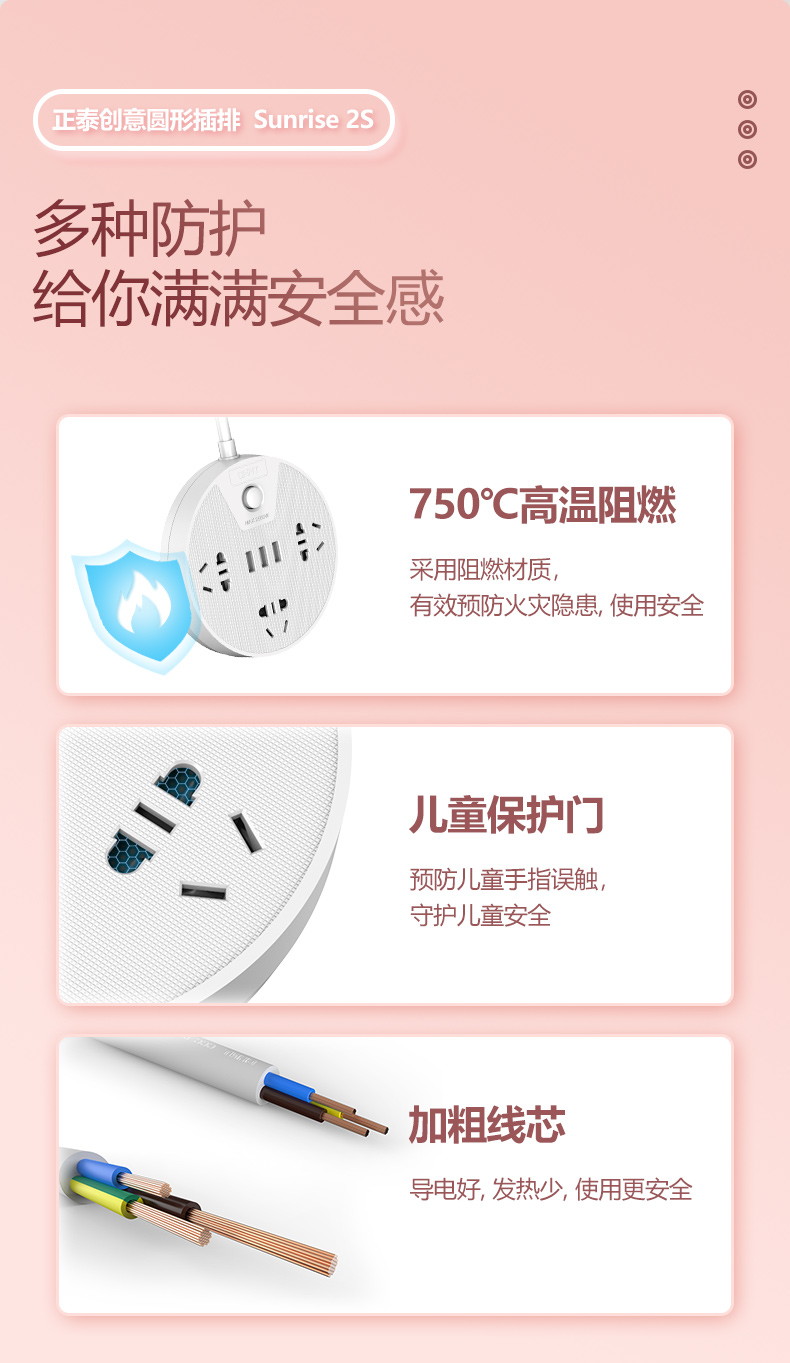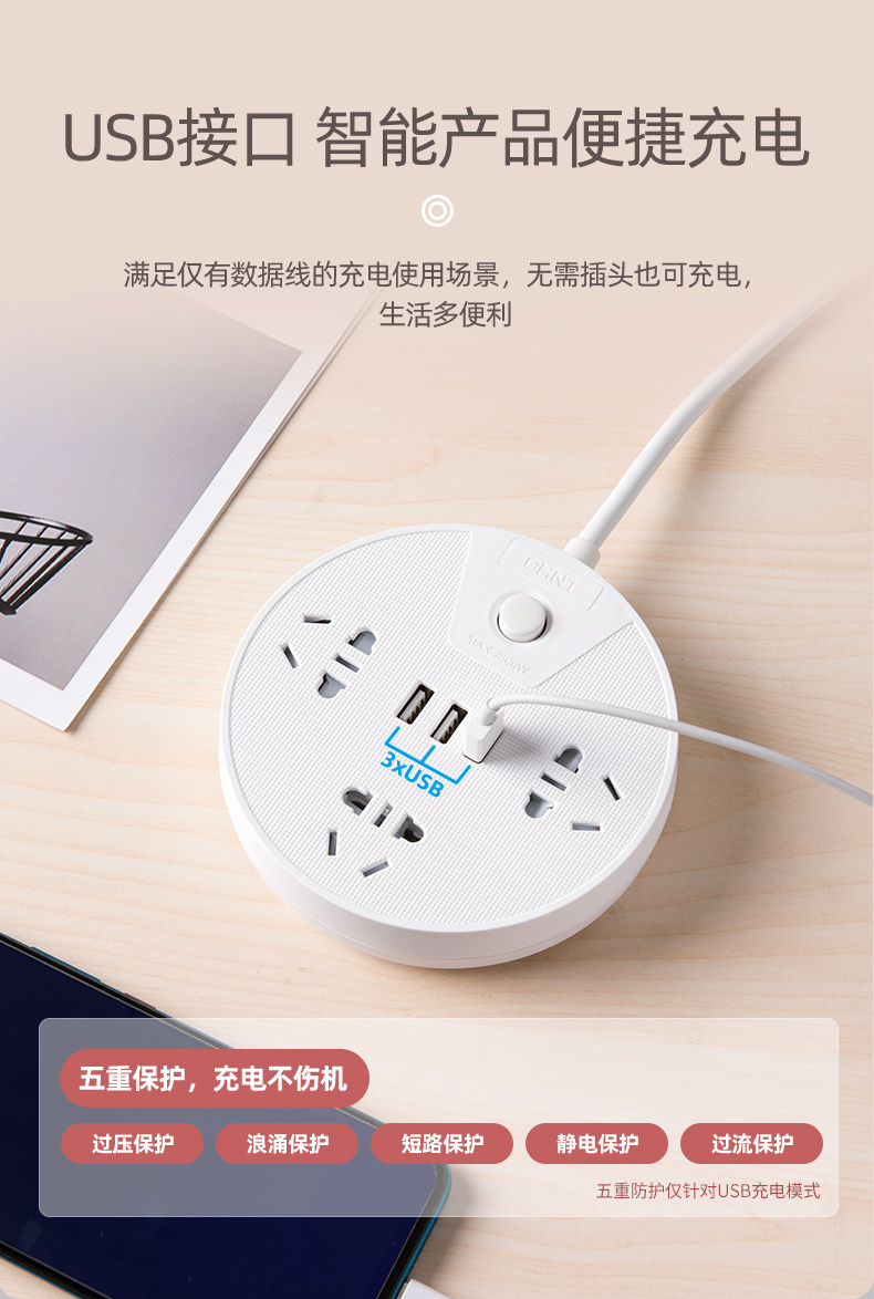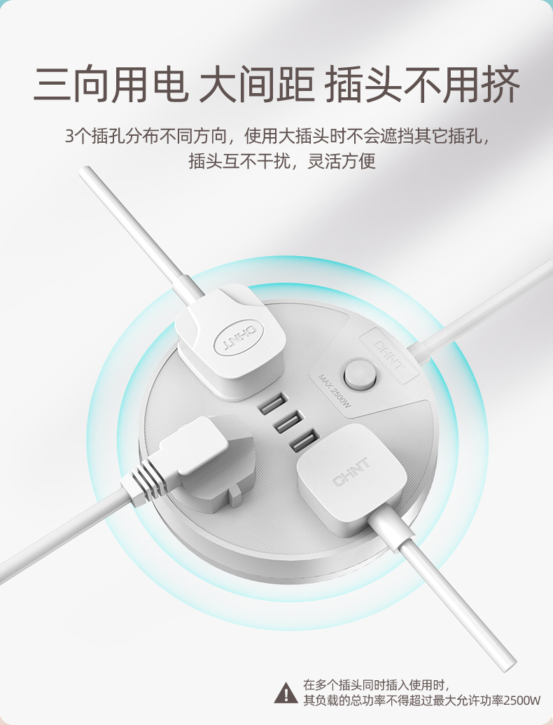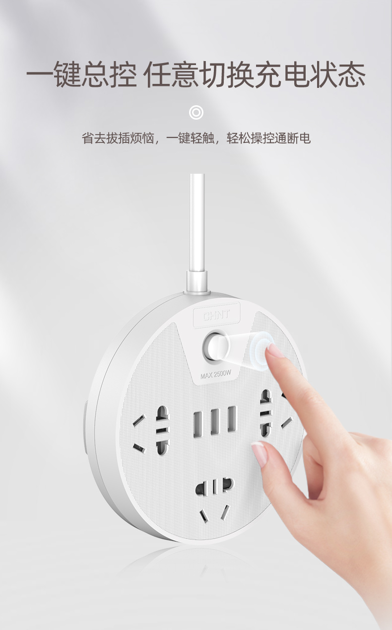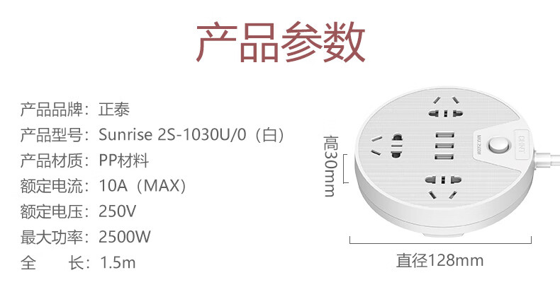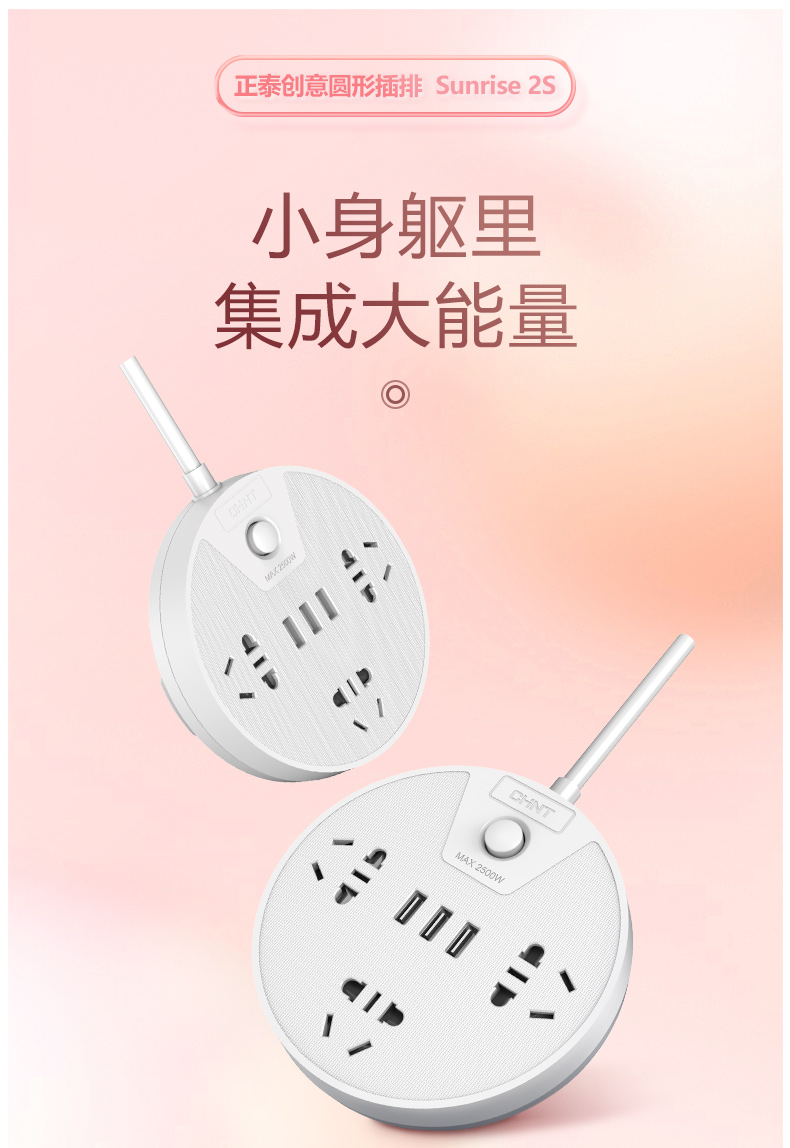 正泰插座插排多功能家用圓形USB排插宿舍學(xué)生插板帶線接拖插線板Sunrise2S-1030U/06插位+3USB白色-1.5m 自營(yíng)