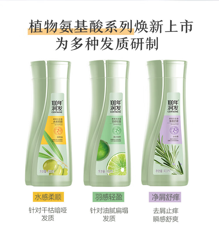 100年潤發(fā)洗發(fā)水(水感柔順、羽感輕盈)調理氨基酸男女士洗發(fā)露液頭水膏百年潤發(fā)750ML(一箱8瓶,整箱售) 自營