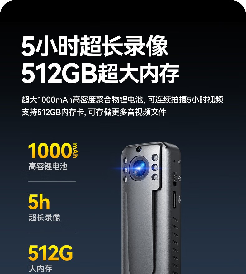 警藍(lán)偉業(yè)DSJ-M214K高清夜視攝像機(jī)隨身便攜攝像機(jī)小型隨身佩戴記錄儀512G 自營(yíng)