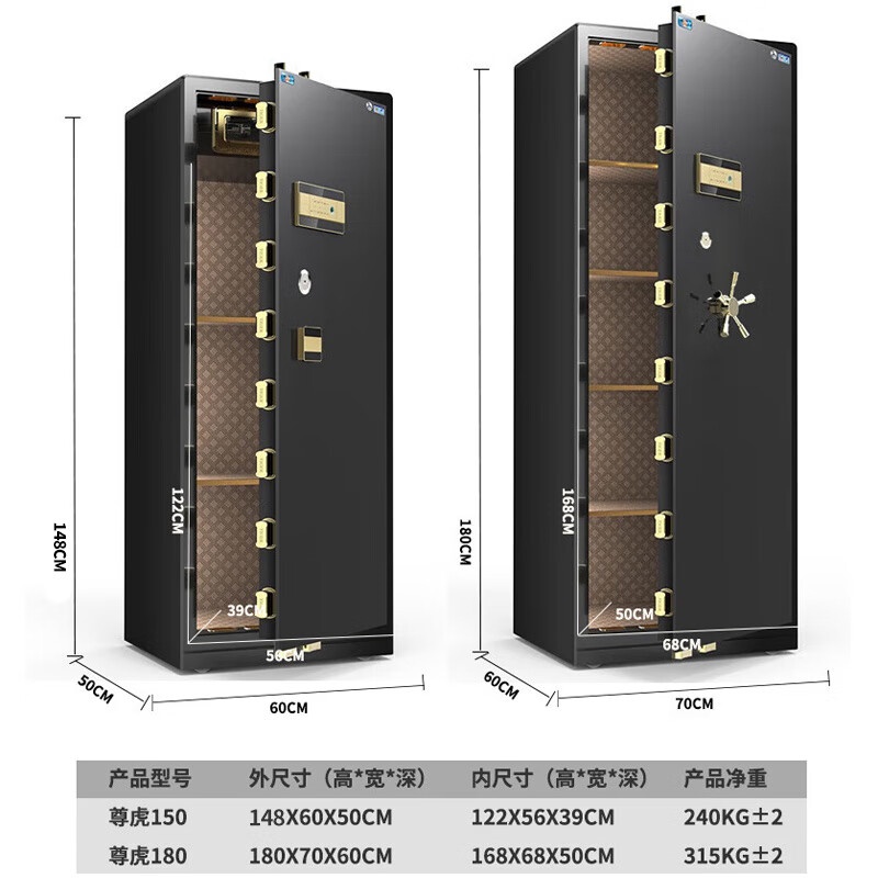 虎牌保險柜家用辦公小型國標認證保險箱180cm指紋密碼全鋼防盜財務專用保密柜 尊虎系列 商務黑 自營