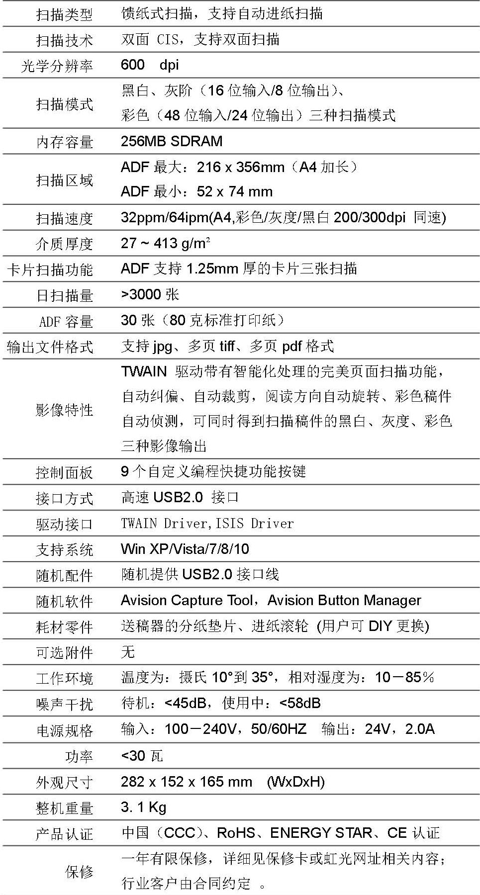 虹光AVF341彩色雙面A4饋紙式文檔掃描儀 支持國產(chǎn)操作系統(tǒng) 自營