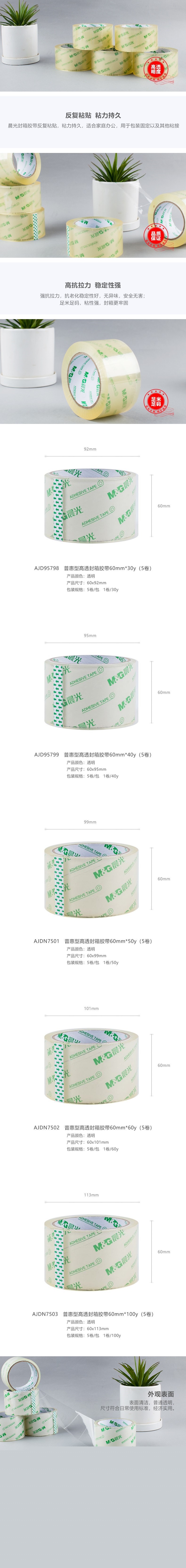 晨光普惠高透封箱膠帶60mm*100y5卷AJDN7503 自營