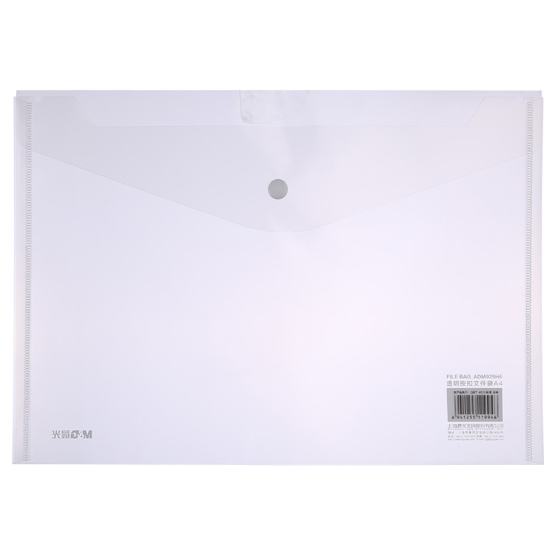晨光透明按扣文件袋A4 透明白ADM929H6 自營