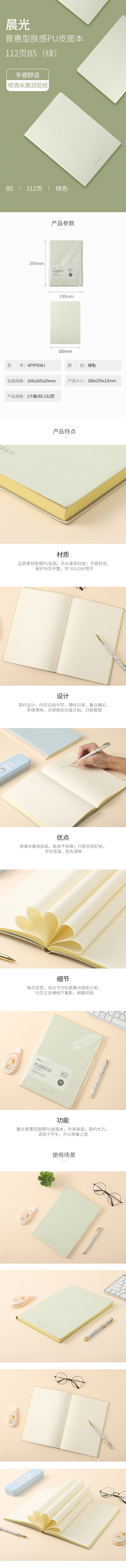 普惠型膚感PU皮面本112頁B5(綠) 自營