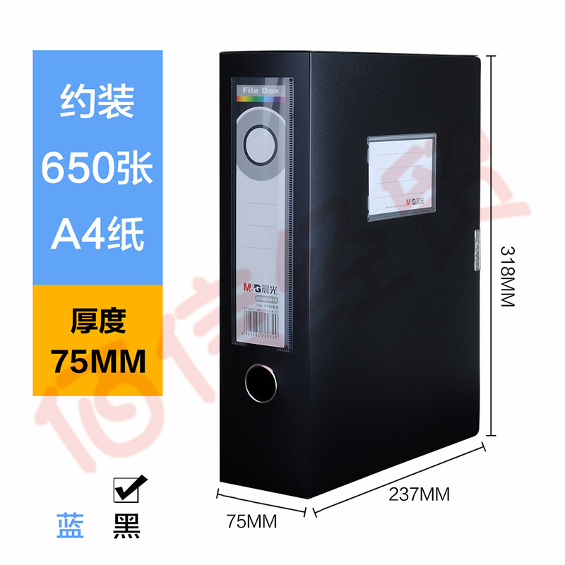 ■晨光ADM94818A 4寸檔案盒文件收納整理 耐用牢固粘扣 A4文件盒資料盒 背寬75mm 黑色 單個裝 自營