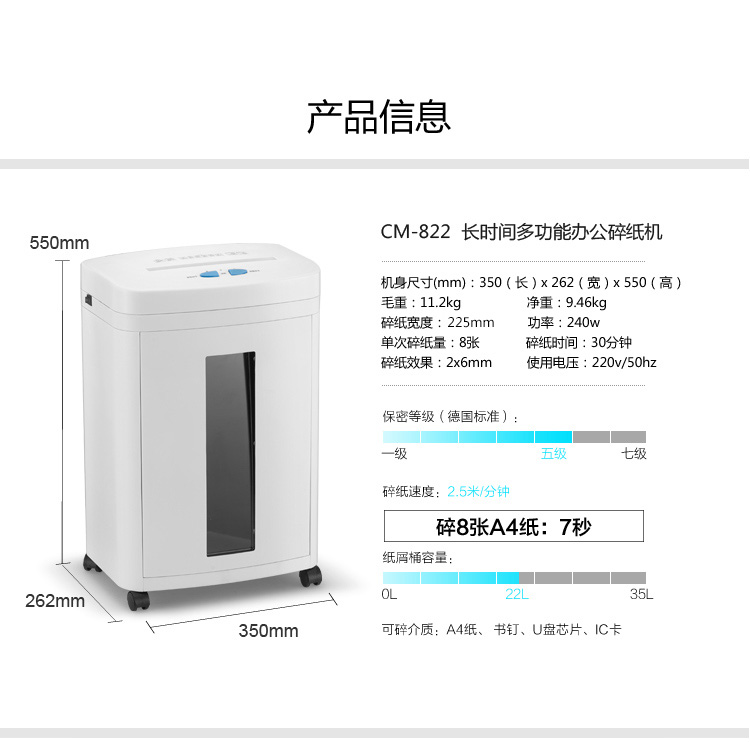 科密碎紙機CM-822 多功能存儲介質(zhì)銷毀機 可碎紙、IC卡、芯片 國保測認(rèn)證保密等級二級 22L 自營