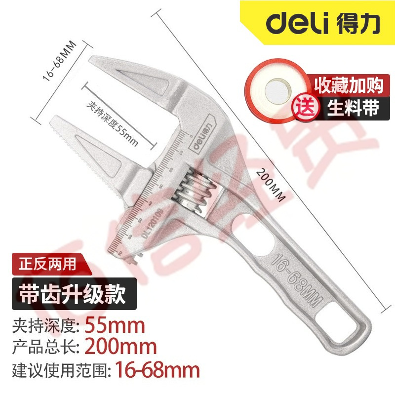 得力(deli)DL120109 衛(wèi)浴扳手多功能工具短柄大開口器維修下水器管道空調(diào)活口扳手 活管兩用衛(wèi)浴扳手16-68mm
