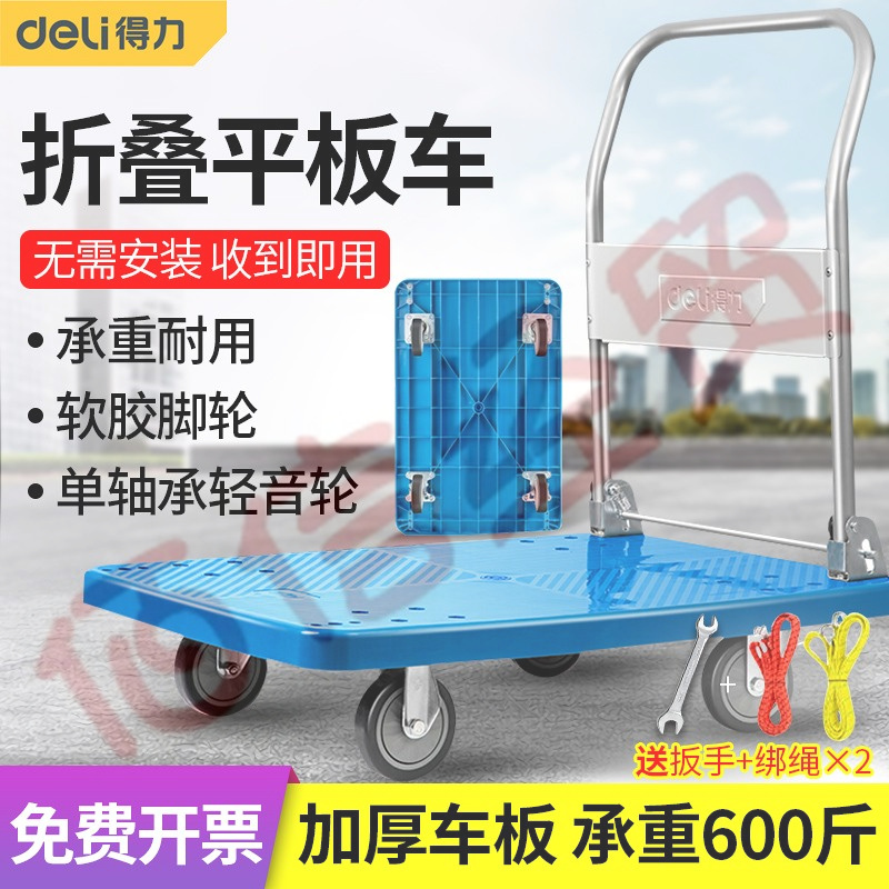 ■得力 擺攤車平板車-四輪搬運(yùn)車 (實(shí)惠款)承重600斤【單軸承輕音輪】DL6112 自營(yíng)